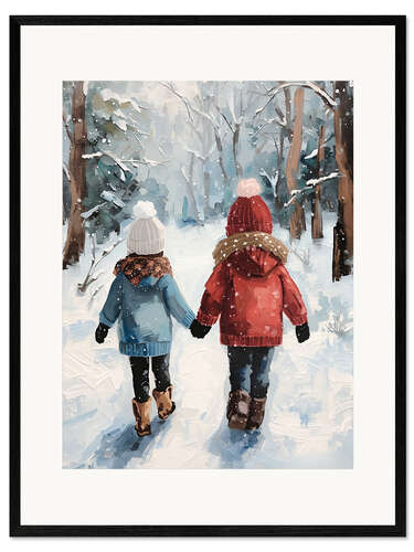 Gerahmter Kunstdruck Spaziergang im Winterwald