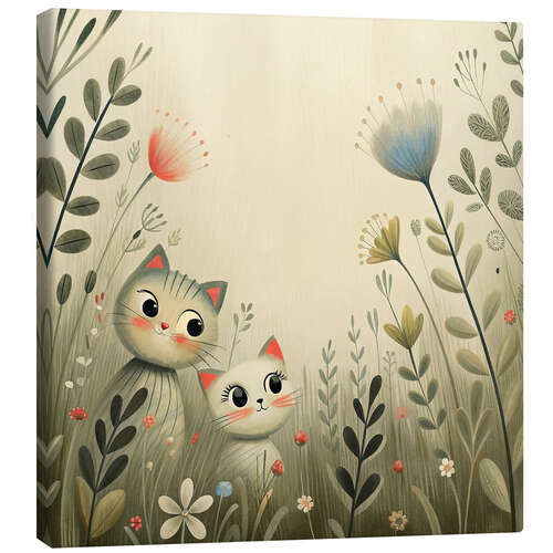 Leinwandbild Neugierige Kätzchen zwischen Wildblumen