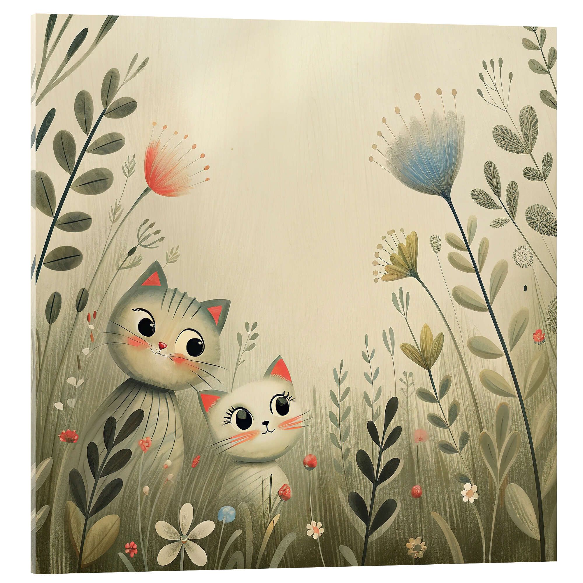 Acrylglasbild Neugierige Kätzchen zwischen Wildblumen