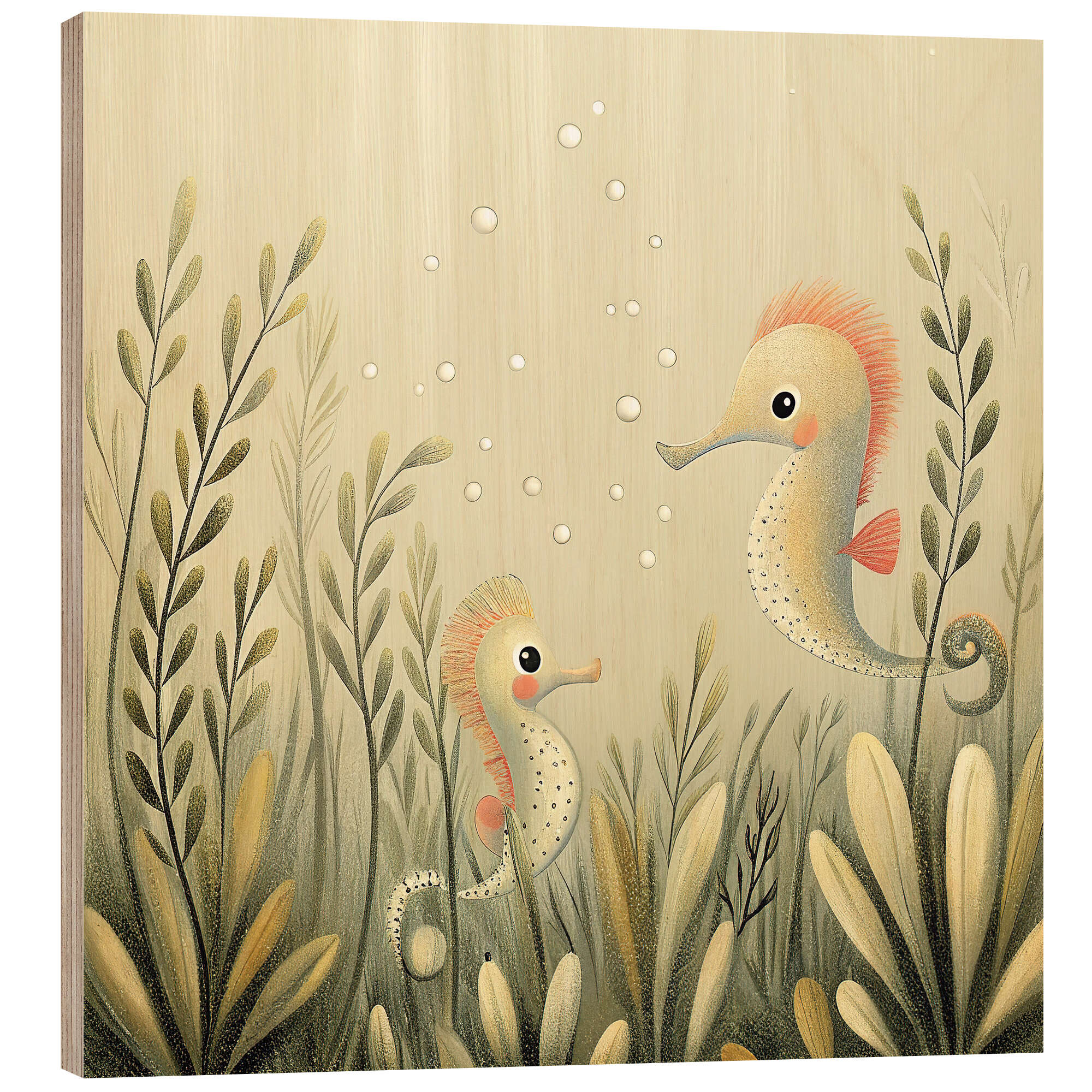 Posterlounge   Wandbilder   Illustration   nobelart   Holzbild Niedliche Seepferdchen