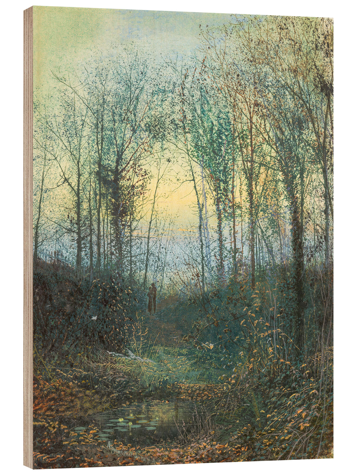 Posterlounge   Wandbilder   Natur   Winter   John Atkinson Grimshaw   Holzbild Liebende im Wald, 1871