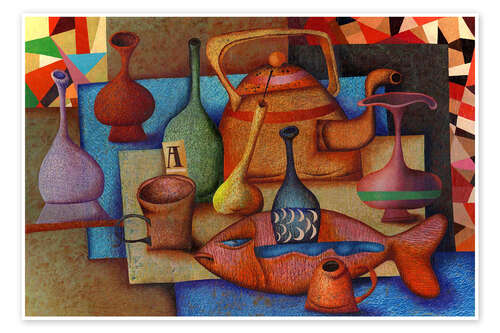 Posterlounge   Wandbilder   Rot   Andrej Losovoj   Poster Stillleben mit Fisch und Krügen