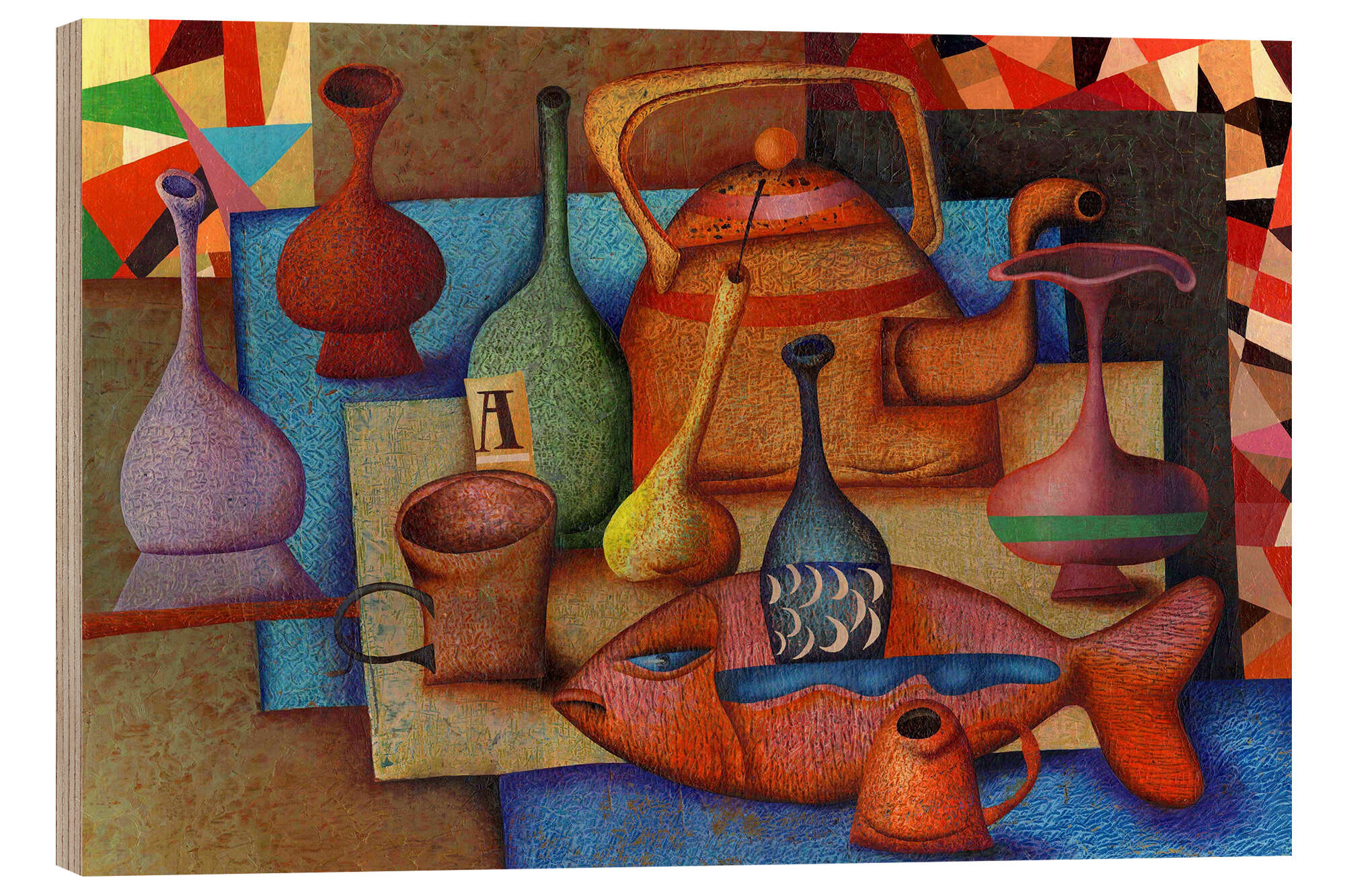 Posterlounge   Wandbilder   Rot   Andrej Losovoj   Holzbild Stillleben mit Fisch und Krügen