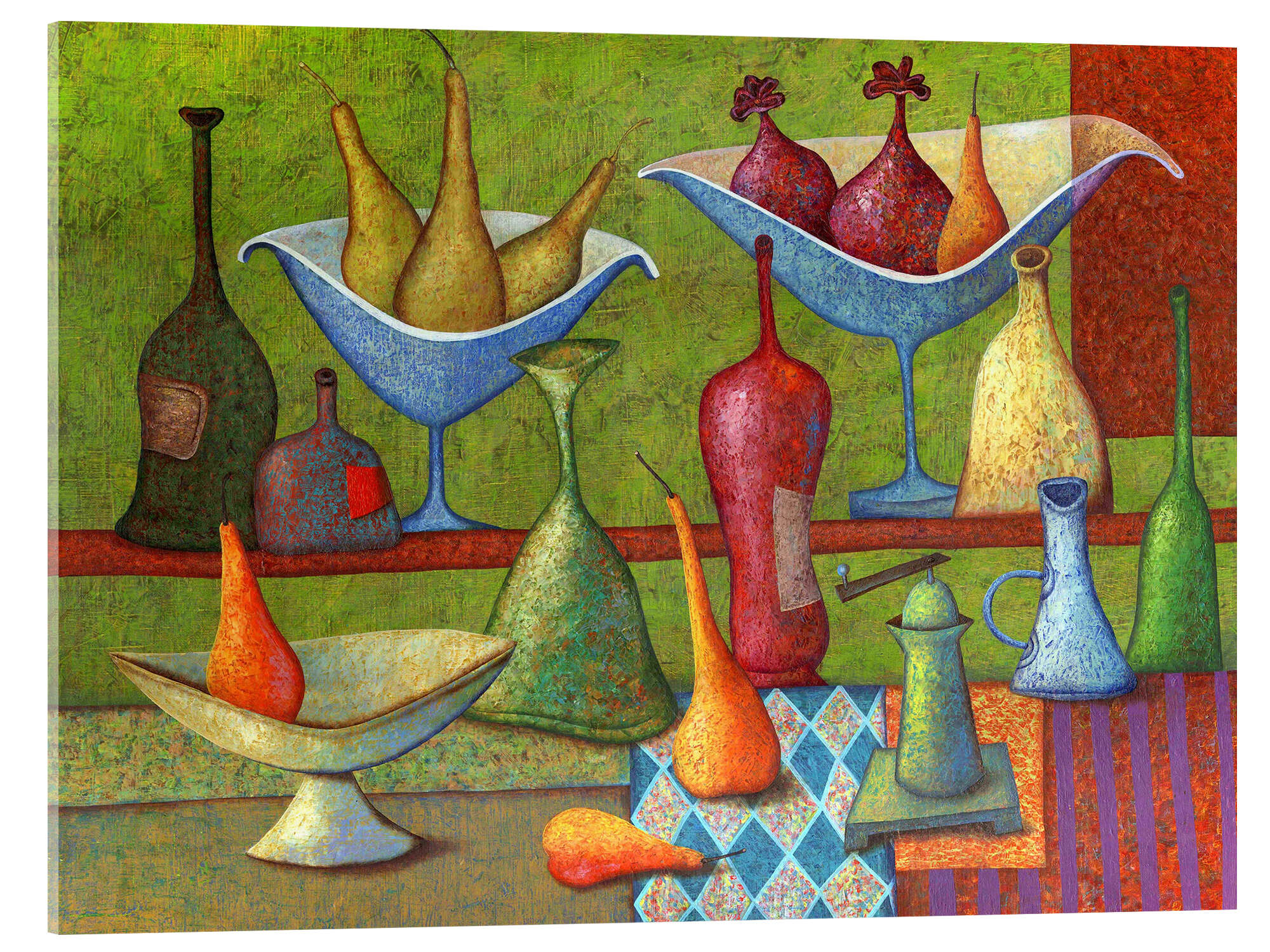 Posterlounge   Wandbilder   Grün   Andrej Losovoj   Acrylglasbild Stillleben mit Vasen, Flaschen und Birnen
