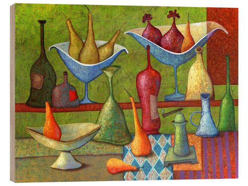 Posterlounge   Wandbilder   Grün   Andrej Losovoj   Holzbild Stillleben mit Vasen, Flaschen und Birnen