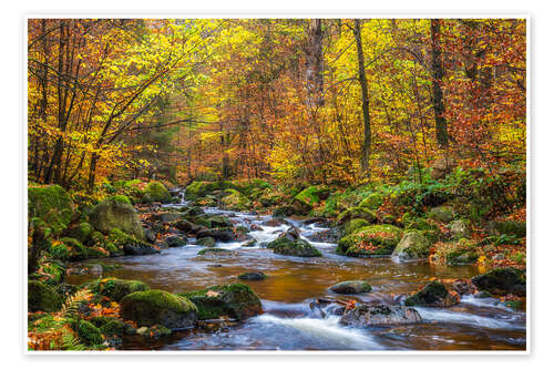 Poster Fluss im bunten Herbstwald