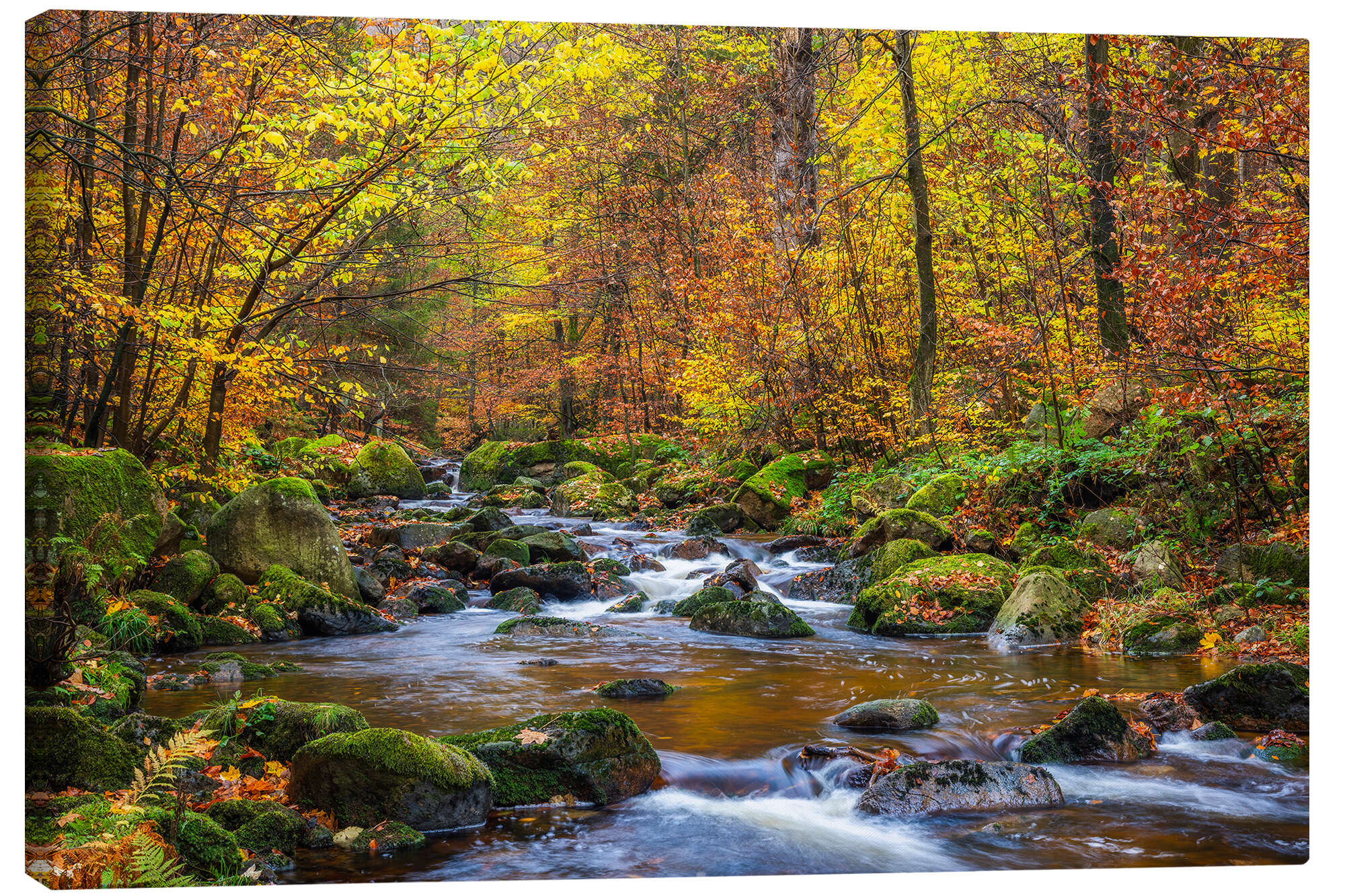 Posterlounge   Wandbilder   Fotografie   Moqui, Daniela Beyer   Leinwandbild Fluss im bunten Herbstwald