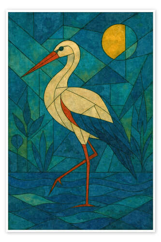 Posterlounge   Wandbilder   Blau   Sabine Wagner   Poster Storchenruf im Schilf