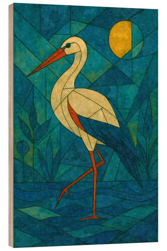 Posterlounge   Wandbilder   Blau   Sabine Wagner   Holzbild Storchenruf im Schilf