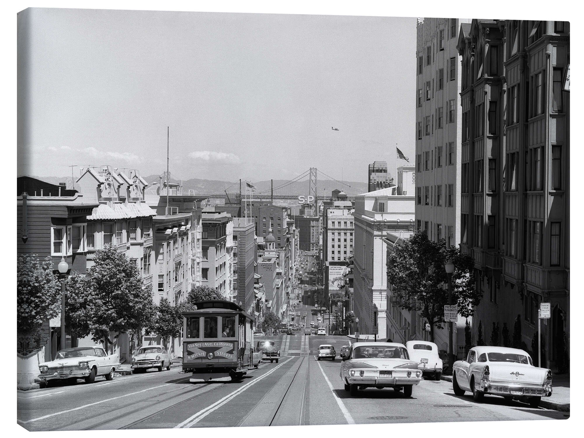 Posterlounge   Wandbilder   Schwarz-Weiß   Leinwandbild San Francisco Kabelstraßenbahn, 1950er