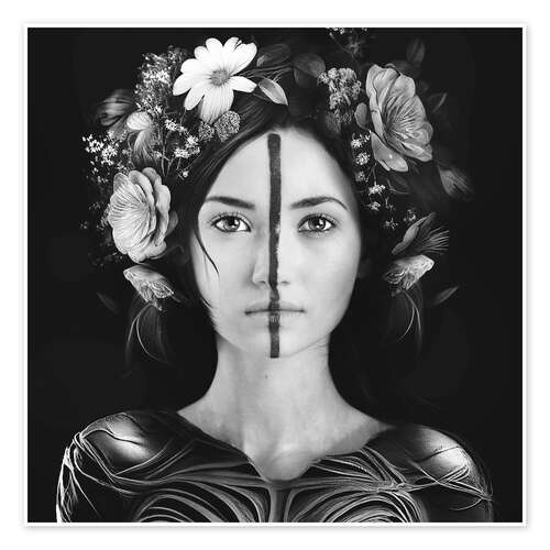 Poster Frau mit Blumenkopfschmuck