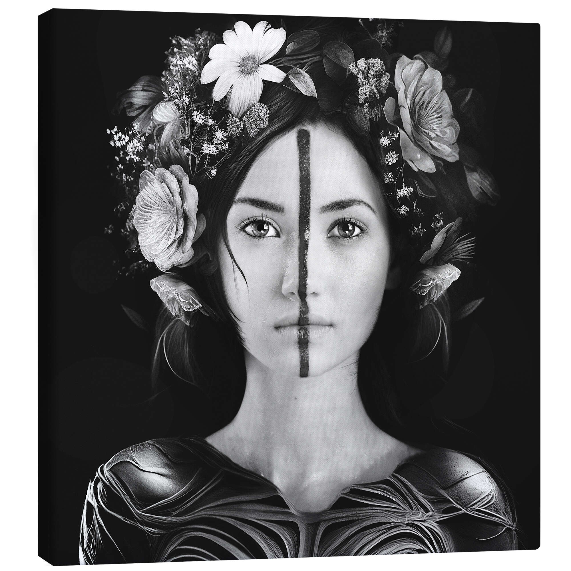 Leinwandbild Frau mit Blumenkopfschmuck