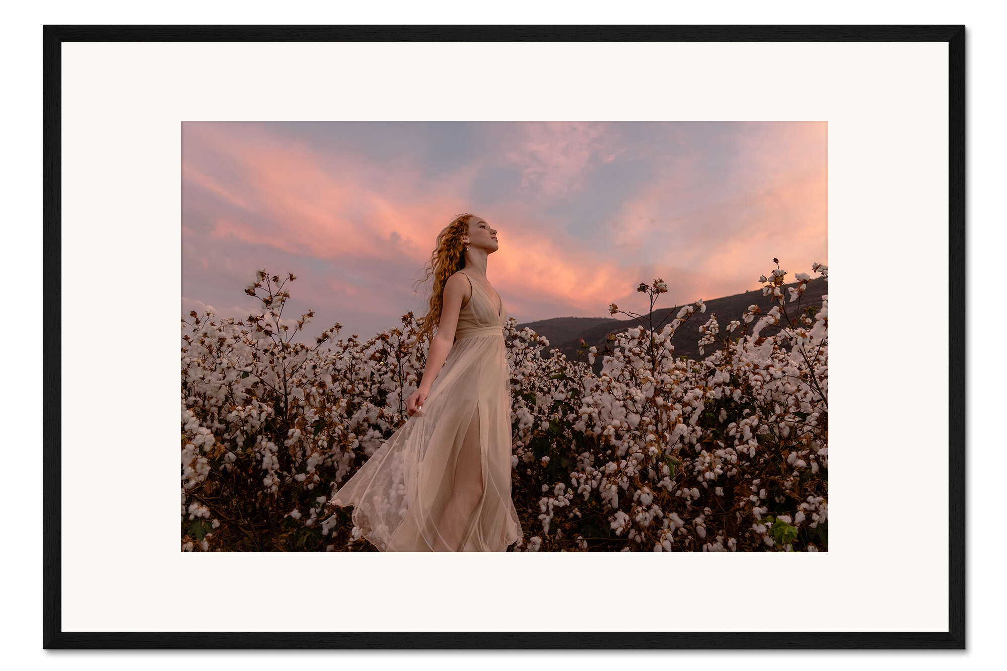 Posterlounge   Wandbilder   Menschen   Frauen   Gerahmter Kunstdruck Sonnenuntergang im Baumwollfeld