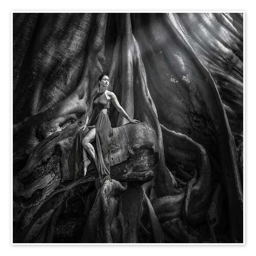 Poster Frau und der alte Baum