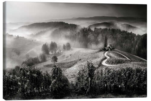 Posterlounge   Wandbilder   Schwarz-Weiß   Leinwandbild Weinberg in der Toskana