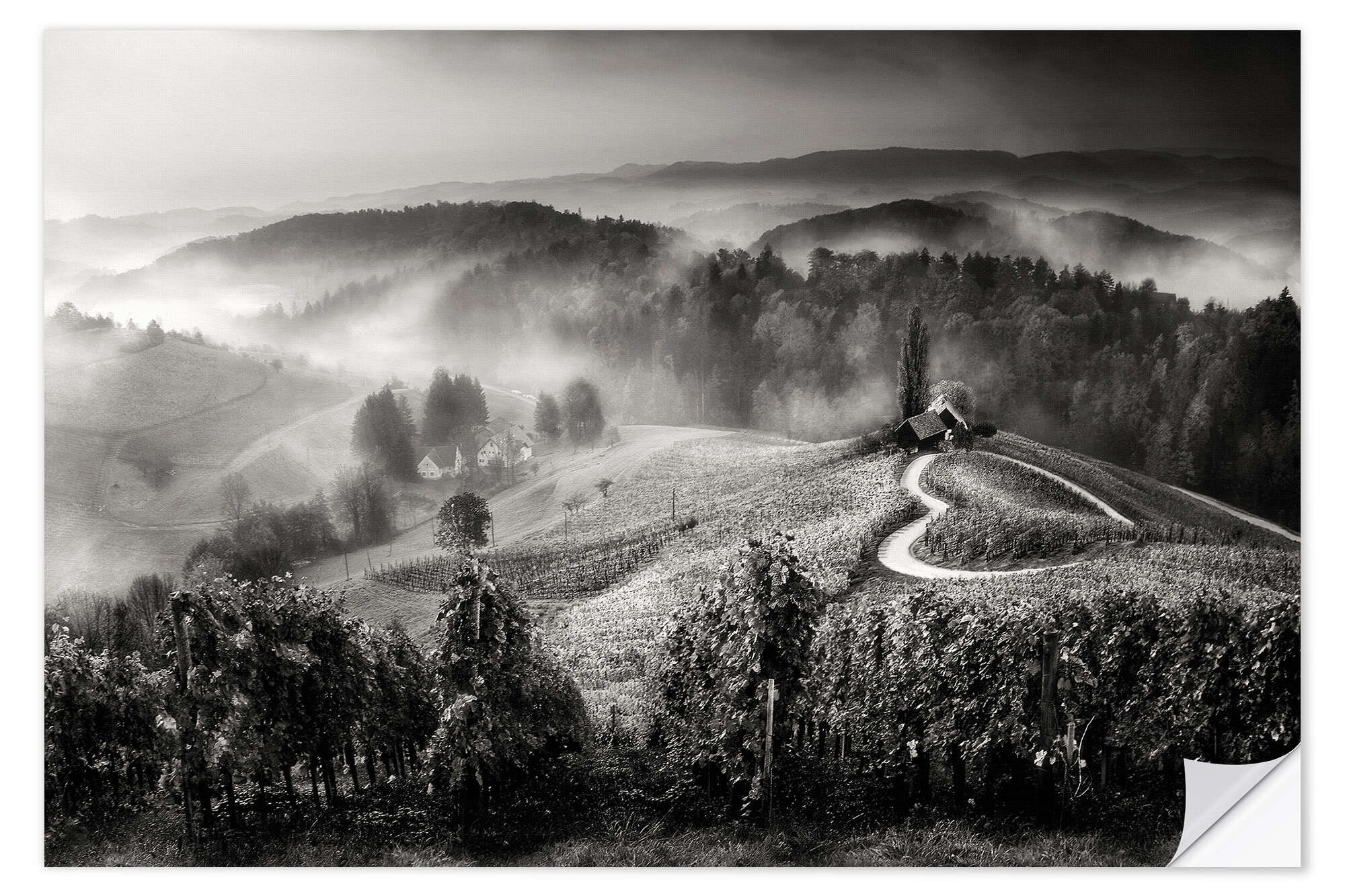 Posterlounge   Wandbilder   Schwarz-Weiß   Wandsticker Weinberg in der Toskana