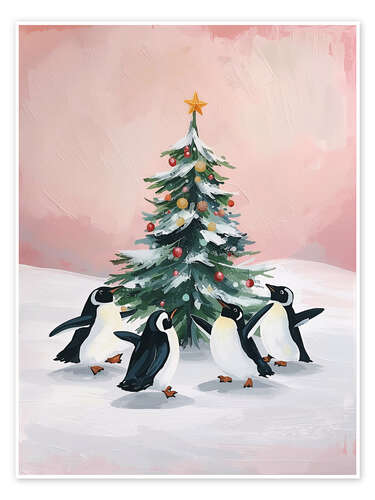 Posterlounge   Wandbilder   Rosé   Ohkimiko   Poster Pinguine tanzen um Tannenbaum