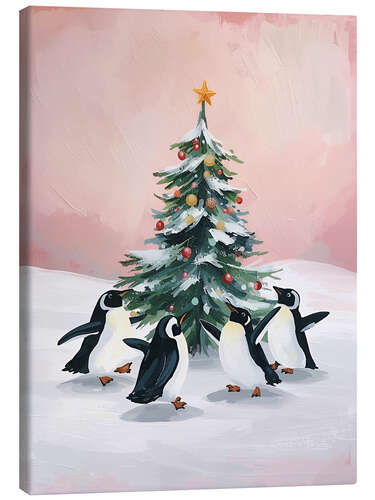 Posterlounge   Wandbilder   Rosé   Ohkimiko   Leinwandbild Pinguine tanzen um Tannenbaum