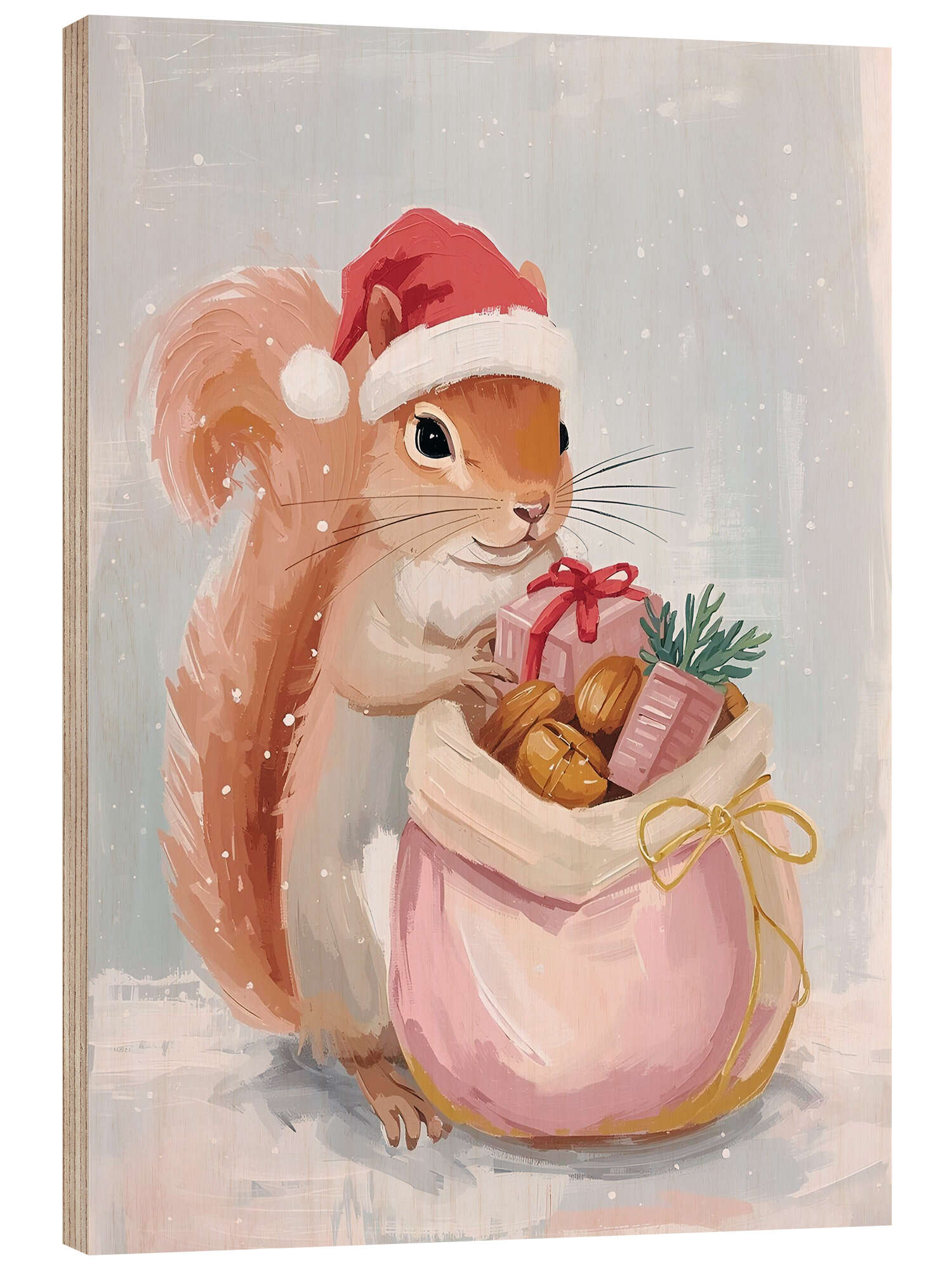 Posterlounge   Wandbilder   Rosé   Ohkimiko   Holzbild Süßes Eichhörnchen und Weihnachtsgeschenke