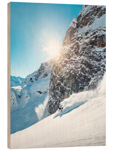 Posterlounge   Wandbilder   Reisen   Alpen   Lucas Tiefenthaler   Holzbild Arlberg Skifahren im Tiefschnee