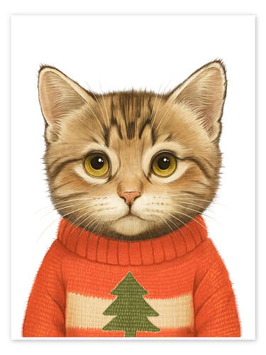 Poster Katze im Weihnachtspullover