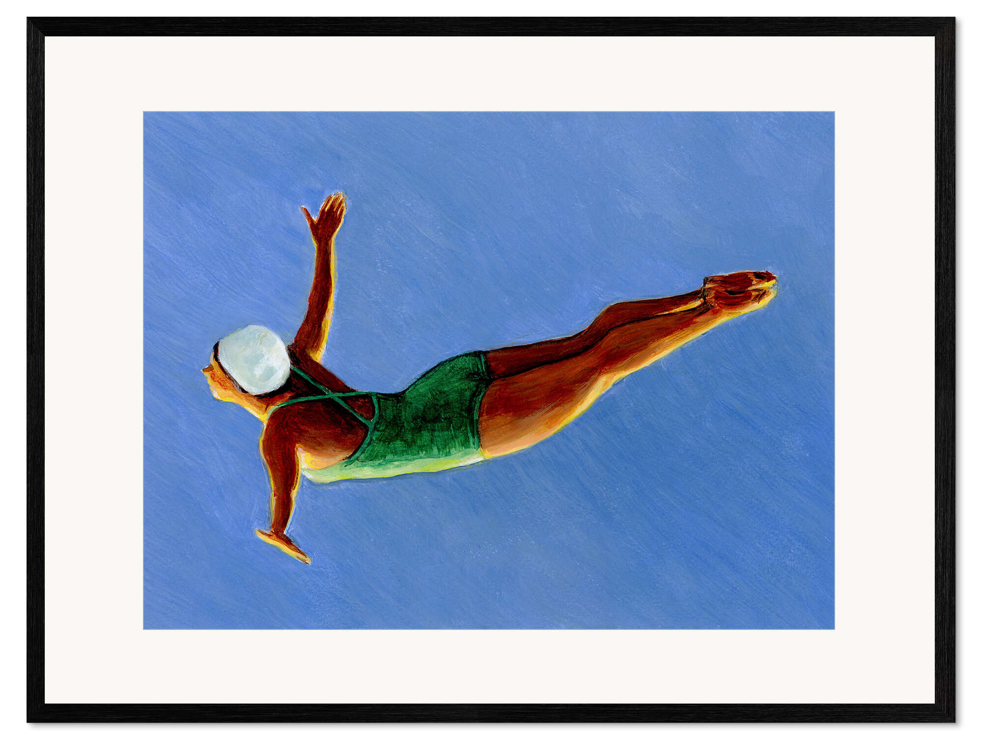 Gerahmter Kunstdruck Turmspringerin mit grünem Badeanzug