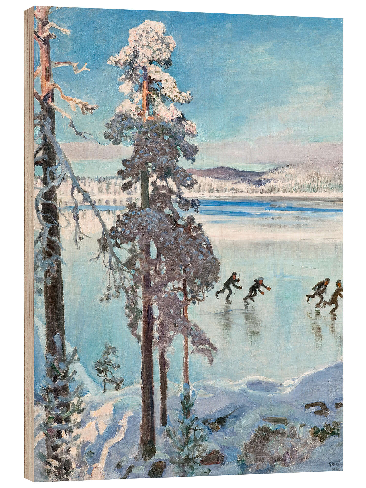 Holzbild Eisläufer in der Nähe der Küste von Kalela