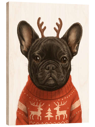 Posterlounge   Wandbilder   Tiere   Haustiere   Hunde   Nikita Korenkov   Holzbild Französische Bulldogge im Weihnachtspullover