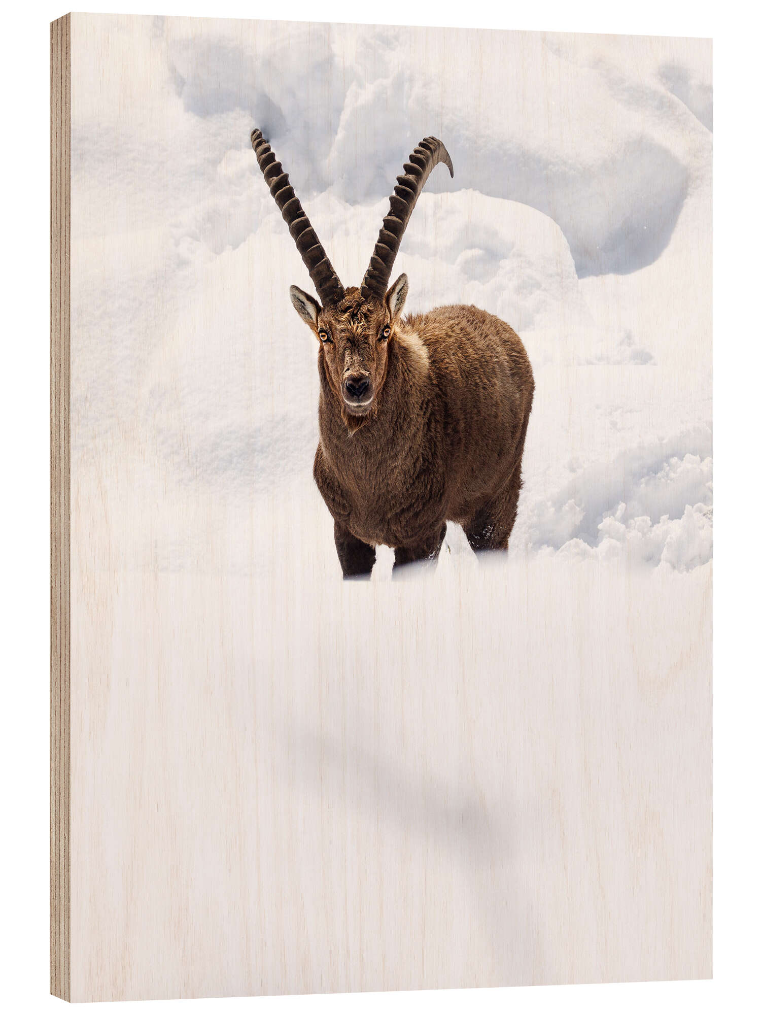 Posterlounge   Wandbilder   Fotografie   Marcel Gross   Holzbild Majestätischer Steinbock im Neuschnee