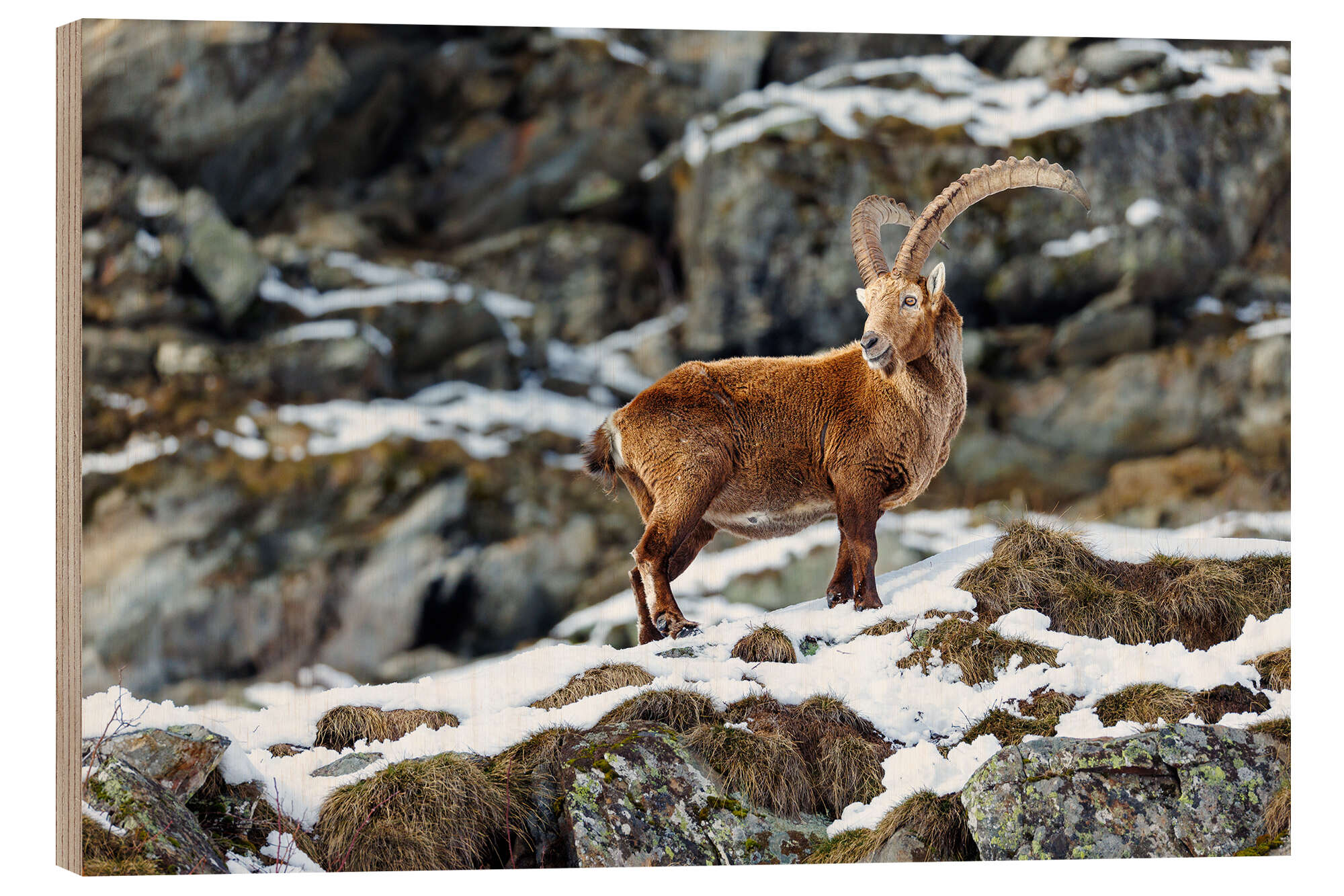 Posterlounge   Wandbilder   Fotografie   Marcel Gross   Holzbild Majestätischer Steinbock im Winter