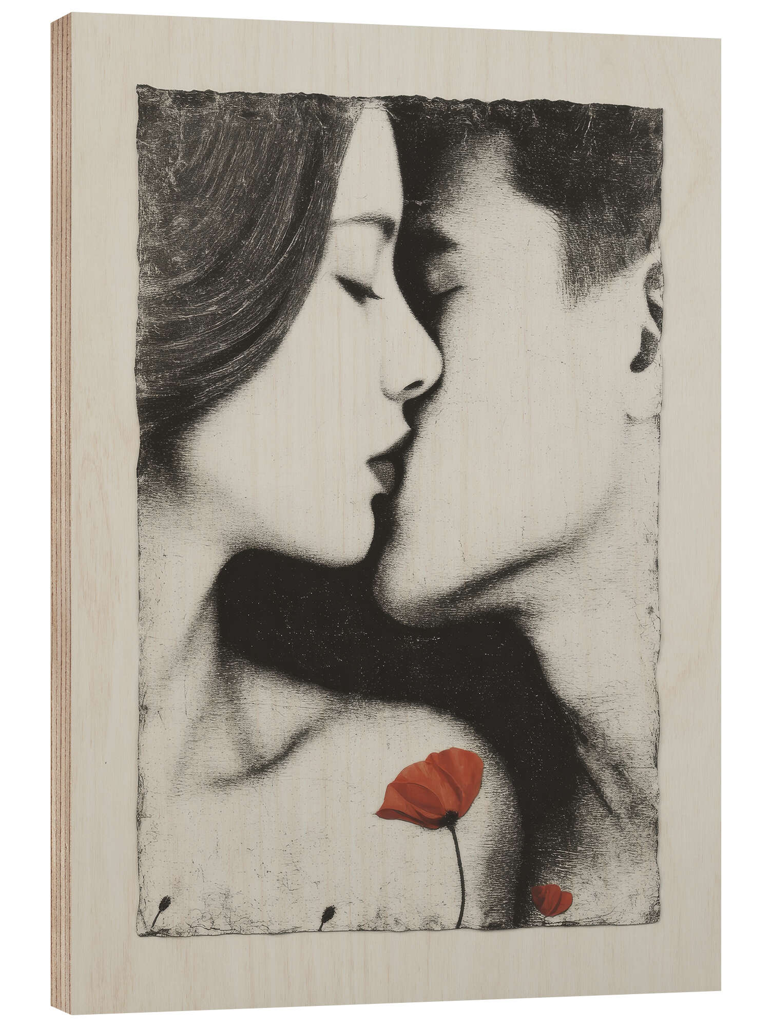 Posterlounge   Wandbilder   Schwarz-Weiß   DejaReve   Holzbild Eine Blume war Zeugin des Kusses