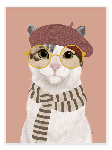 Poster Katze mit Baskenmütze