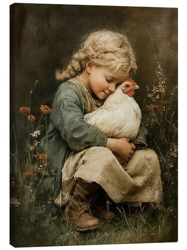Posterlounge   Wandbilder   Mädchenzimmer   Olga Telnova   Leinwandbild Zärtliche Liebe für ein Huhn
