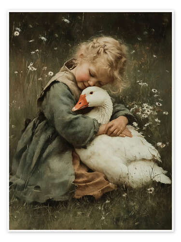 Poster Mädchen umarmt eine Gans