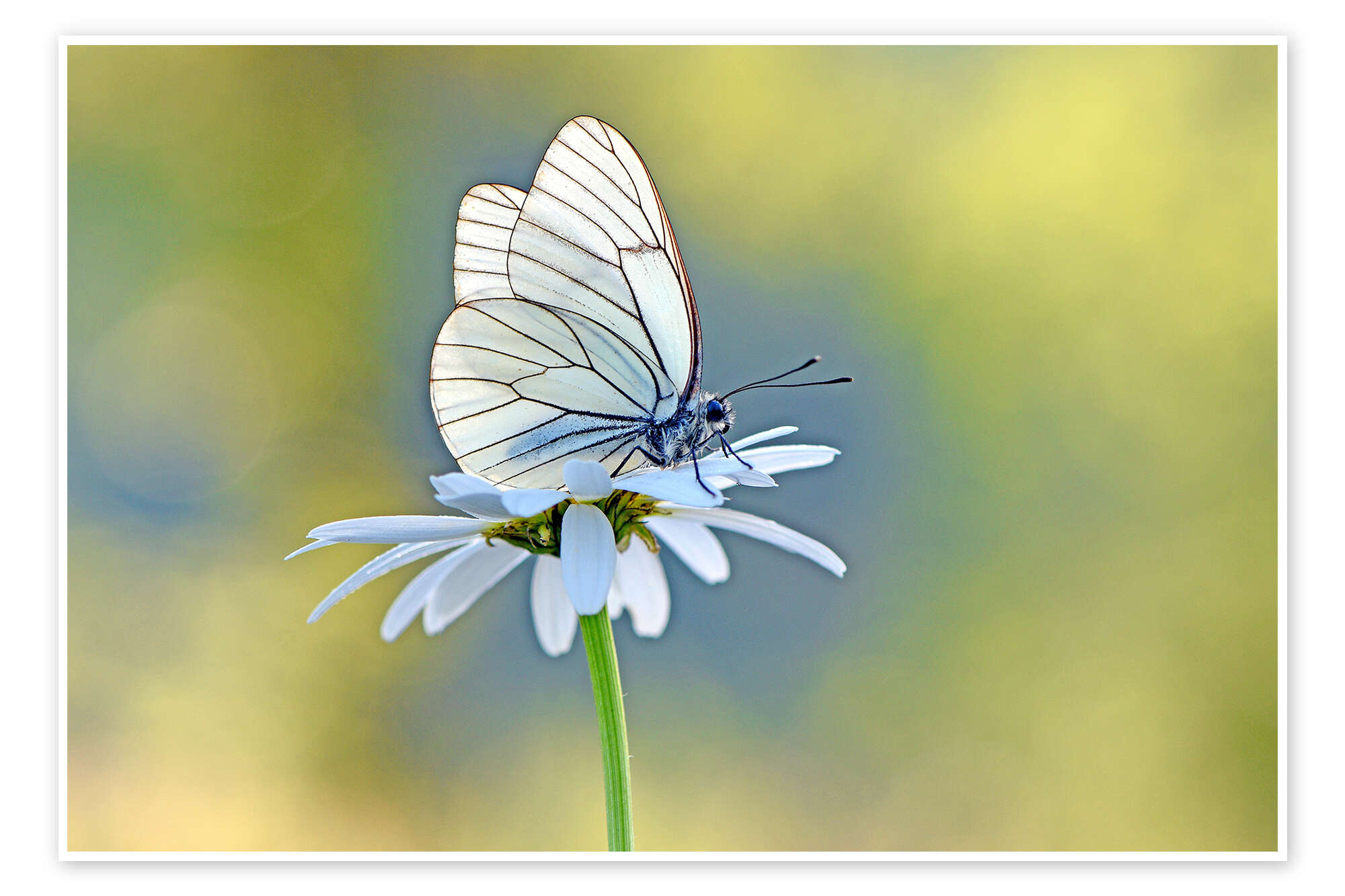 Poster Baumweißling auf Margeritenblüte