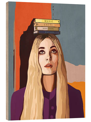 Holzbild Mädchen balanciert Bücher auf dem Kopf