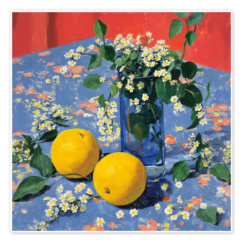 Poster Orangen, weiße Blumen und ein Moment der Ruhe