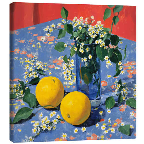 Leinwandbild Orangen, weiße Blumen und ein Moment der Ruhe