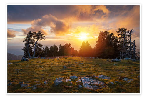 Poster Majestätischer Sonnenuntergang am Berg