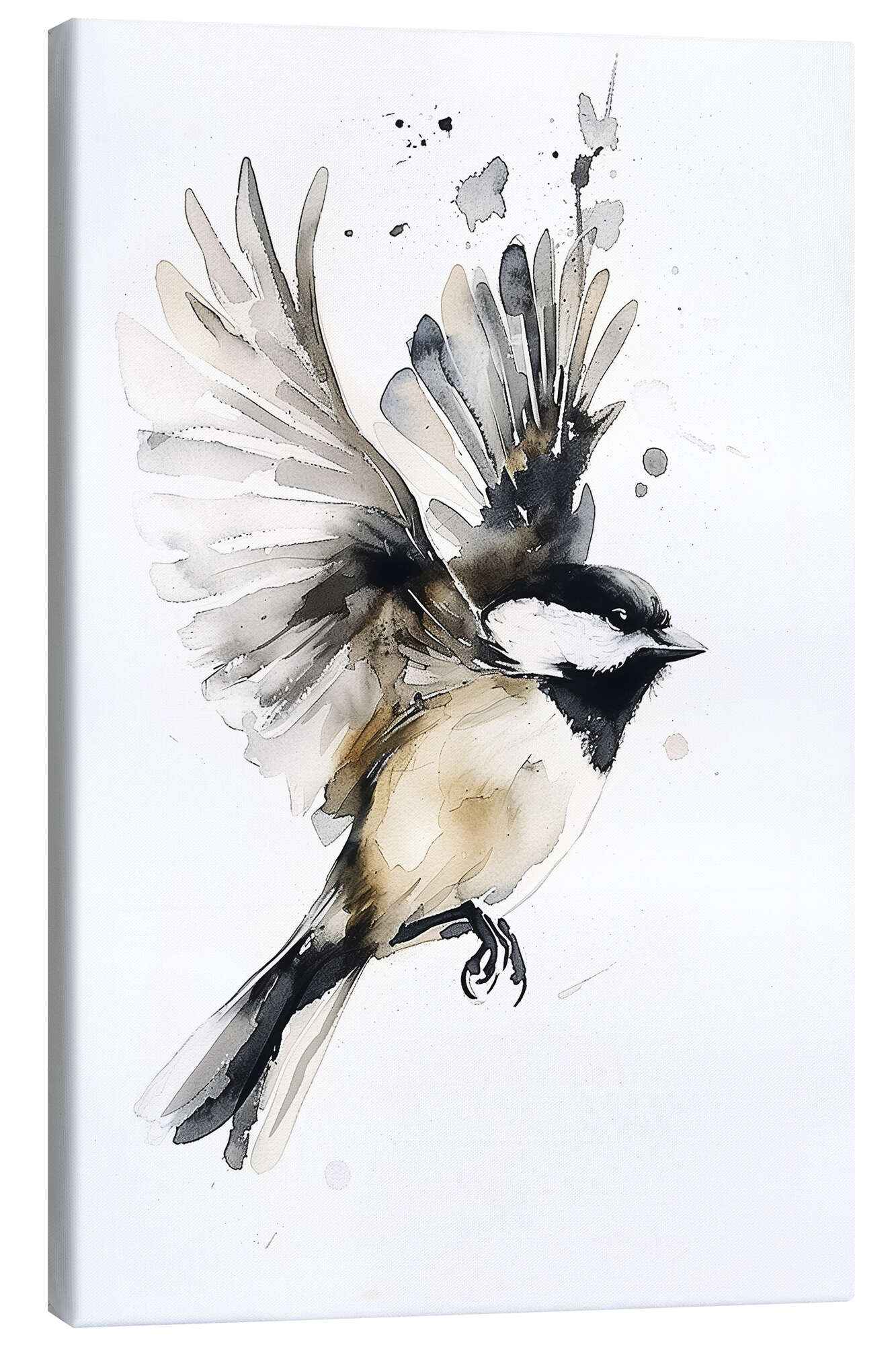 Leinwandbild Aquarell Schwarzkopfmeise im Flug