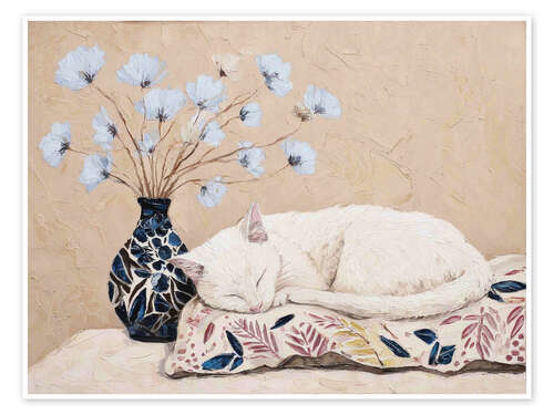 Poster Ein sanfter Nachmittag mit einer weißen Katze