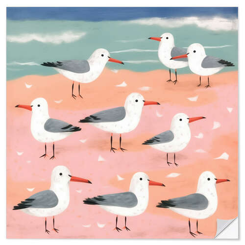 Wandsticker Möwen am Strand