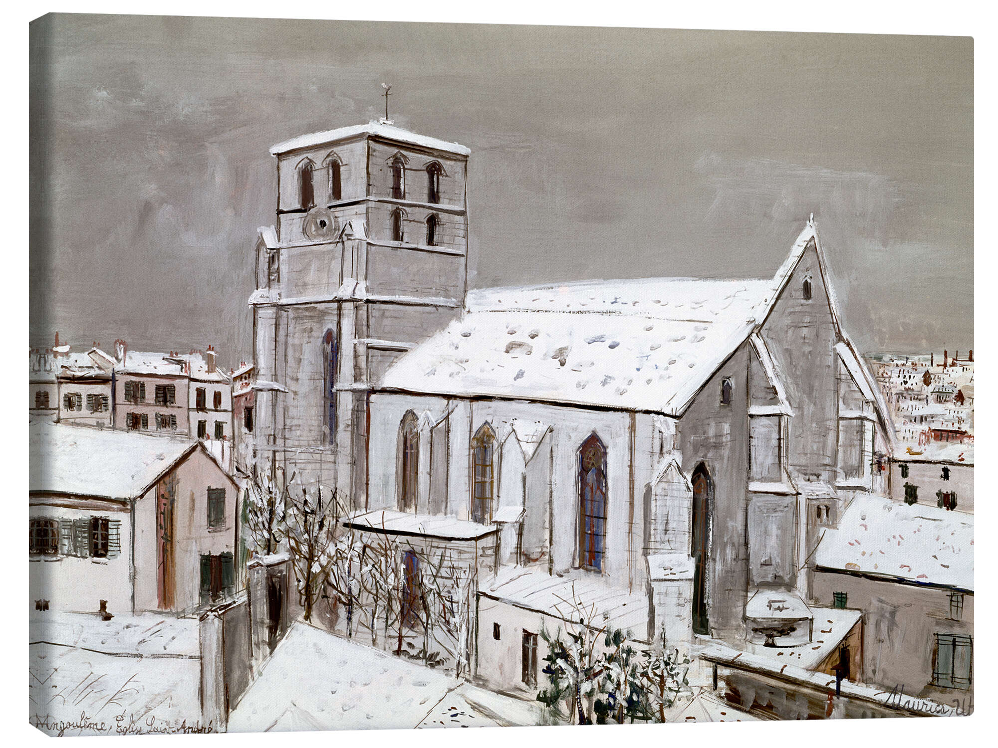 Leinwandbild Kirche Saint-André, Angoulême, im Schnee, 1920
