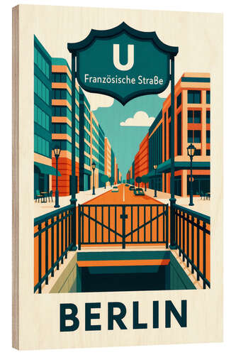 Posterlounge   Wandbilder   Illustration   Sabine Wagner   Holzbild Berlin U-Bahn Reisekunst