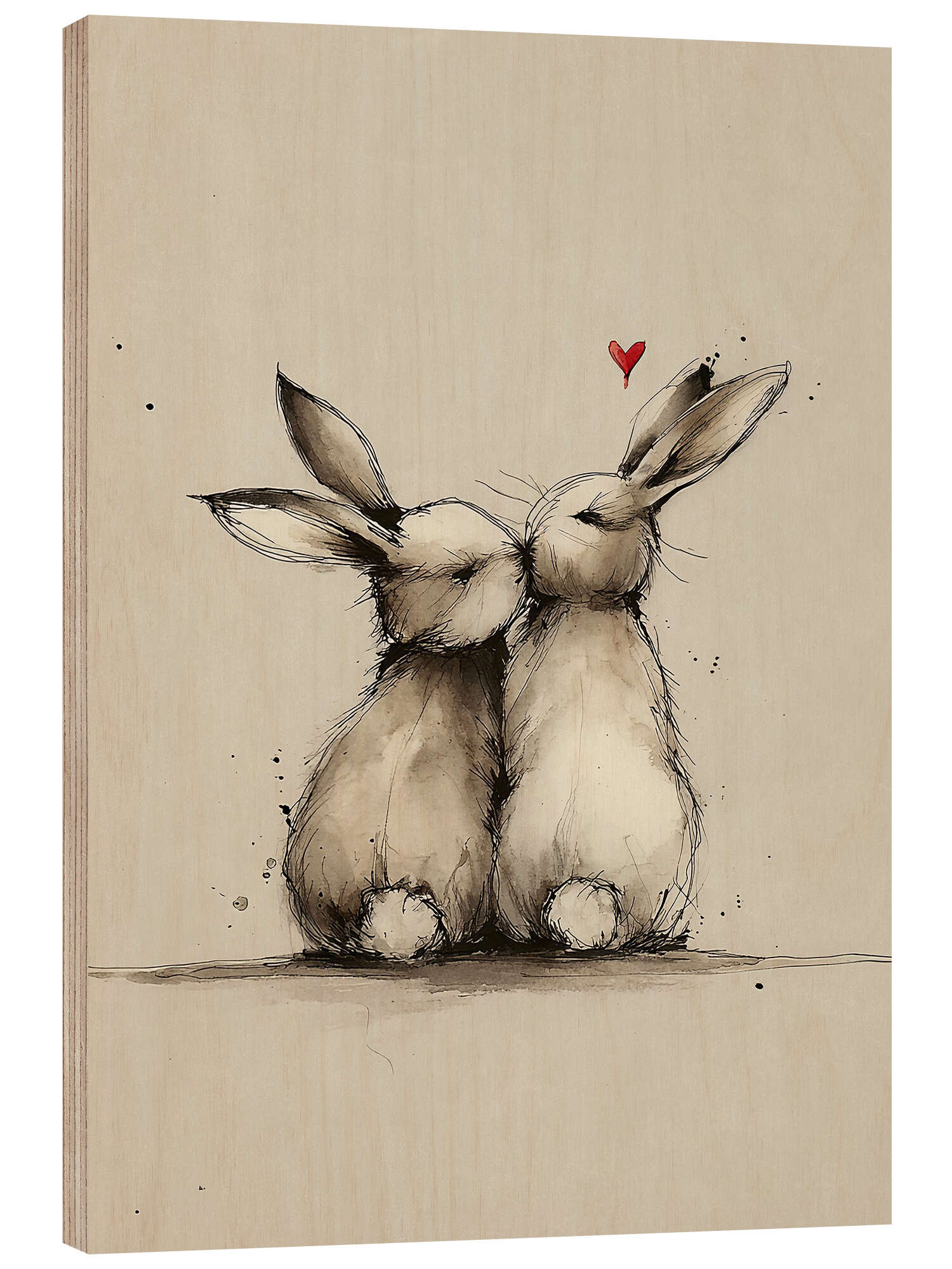 Holzbild Kaninchen verliebt