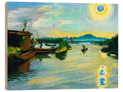Posterlounge   Wandbilder   Fahrzeuge   Boote   Max Pechstein   Holzbild Sonnenaufgang über dem Gardasee