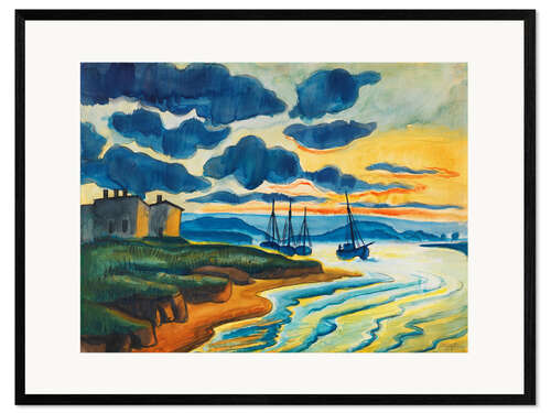 Posterlounge   Wandbilder   Fahrzeuge   Boote   Max Pechstein   Gerahmter Kunstdruck Sonnenuntergang am Meer
