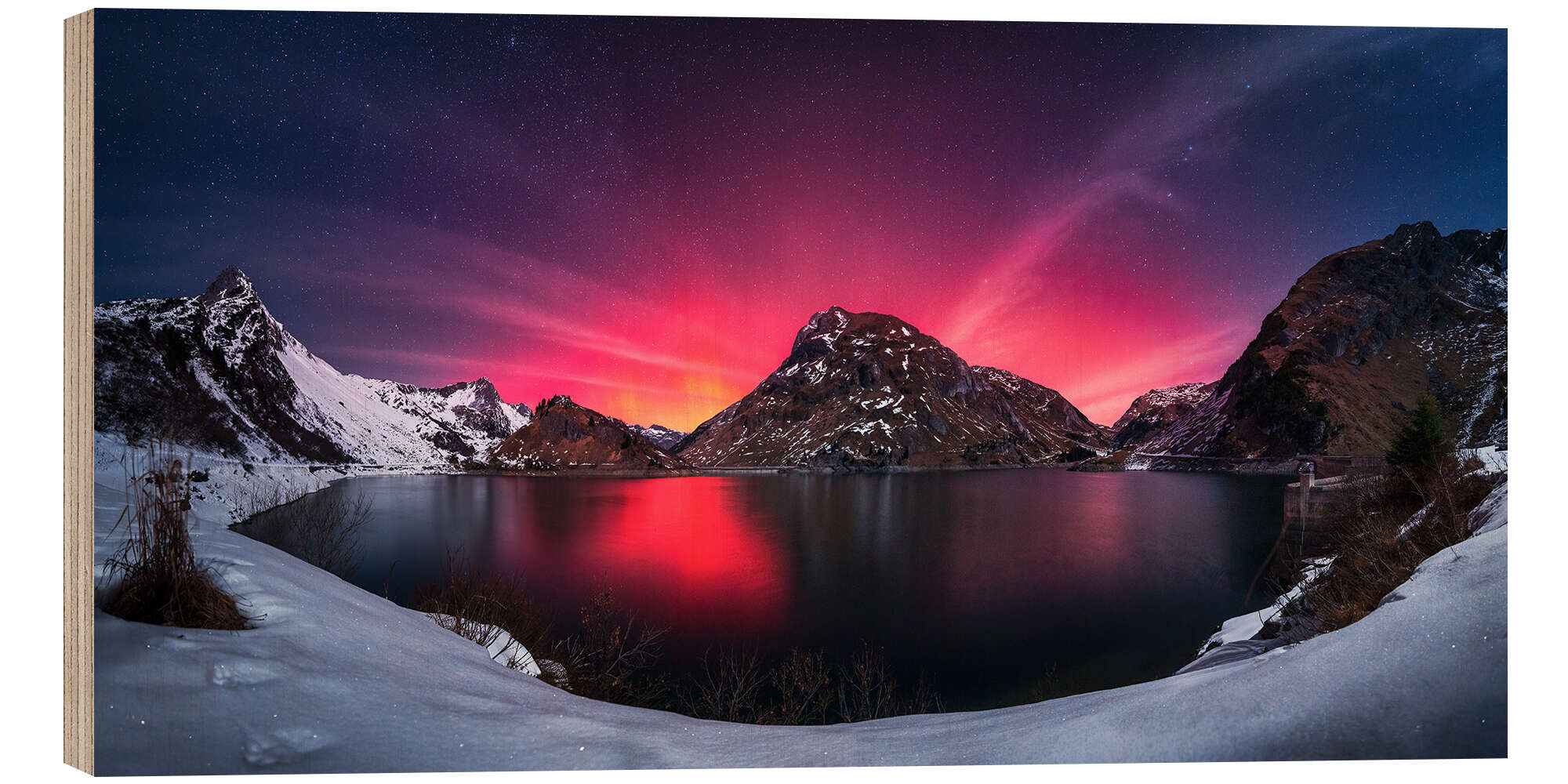 Posterlounge   Wandbilder   Landschaften   Berge & Gebirge   Lucas Tiefenthaler   Holzbild Polarlichter in den Alpen, Spullersee, Arlberg