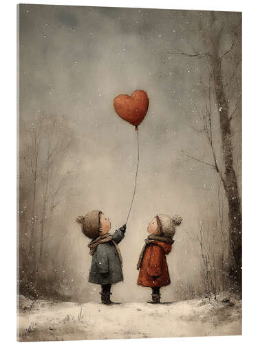 Acrylglasbild Vintage Valentinstag Kinder mit Herzballondruck