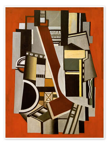 Poster Mechanische Elemente auf rotem Grund, 1924